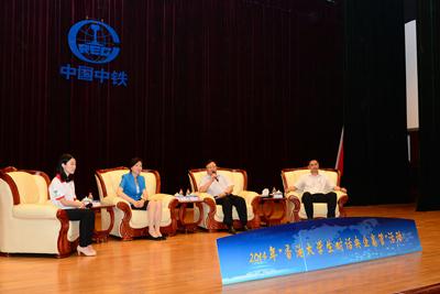 7月18日,中央企业团工委、中央企业青联在中国中铁股份有限公司举办“共创新世界2014”北京暑期实习团——“香港大学生对话央企高管”活动。中央企业团工委书记、中央企业青联主席李伟出席活动并讲话,国务院国资委财务监督与考核评价局局长、中央企业青联副主席沈莹,中国节能环保集团公司总经理、中央企业青联副主席王彤宙,中国五矿集团公司副总裁兼首席信息官、中央企业青联常委姚子平作为分享嘉宾出席活动。中国铁路工程总公司总经理姚桂清出席活动并致辞,国务院国资委外事局相关负责同志出席活动,“共创新世界2014”北京暑期实习团的210名香港大学生参加活动。